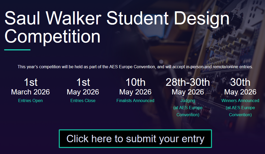 24/03/202624/03/2026AES Europe: Saul Walker Student Design Competition https://aesstudents.org/competitions/saul-walker-student-design-competition/