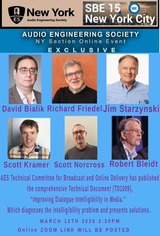 Join AES NY Section and the Society of Broadcast Engineers Chapter 15 March 12th at 2:30 PM on line VIA ZOOM LINK please register if you will attend:
